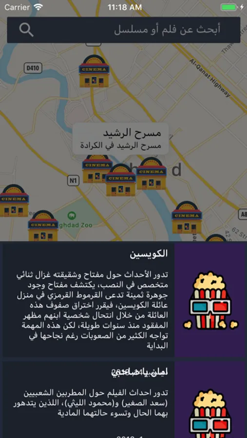 تطبيق كلشي شاشة يمكن الحجز اولاين من خلال التطبيق لمشاهدة الافلام التي تعرض على السينما العراقية الان التطبيق يوفر لك خريطة لكل دور عرض الافلام السينمائية في العراق