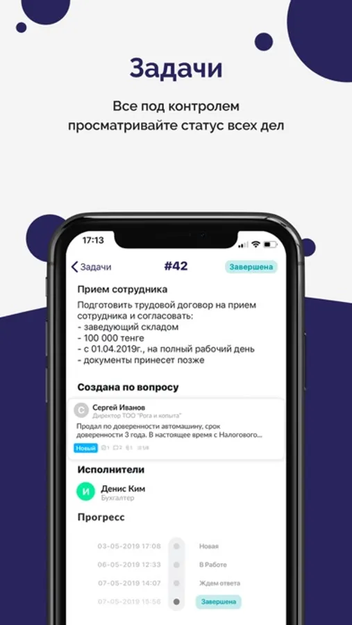 Просматривайте статусы всех дел и получайте уведомления о предстоящих налоговых выплатах и выплатах по зарплате