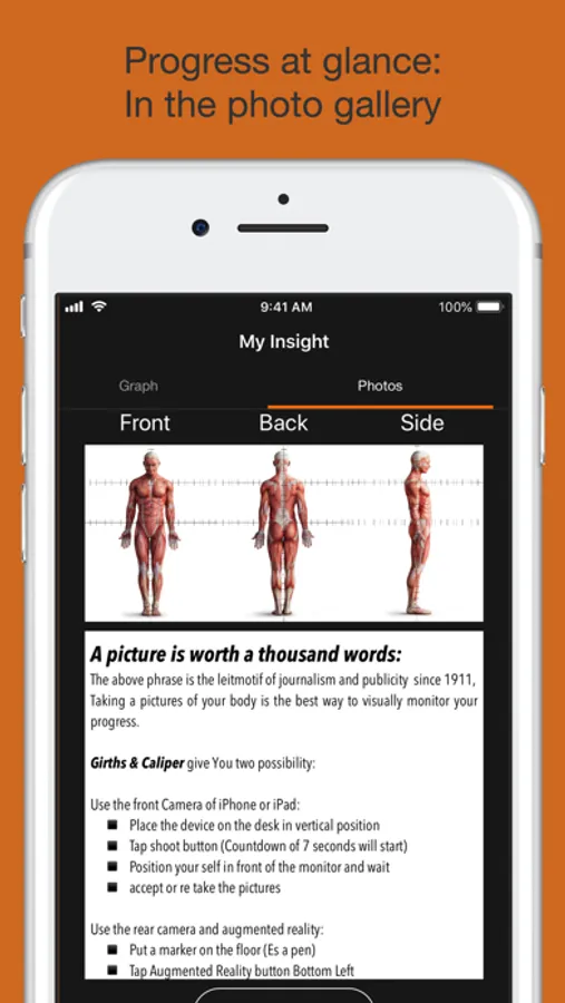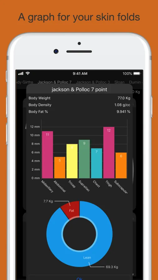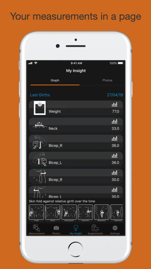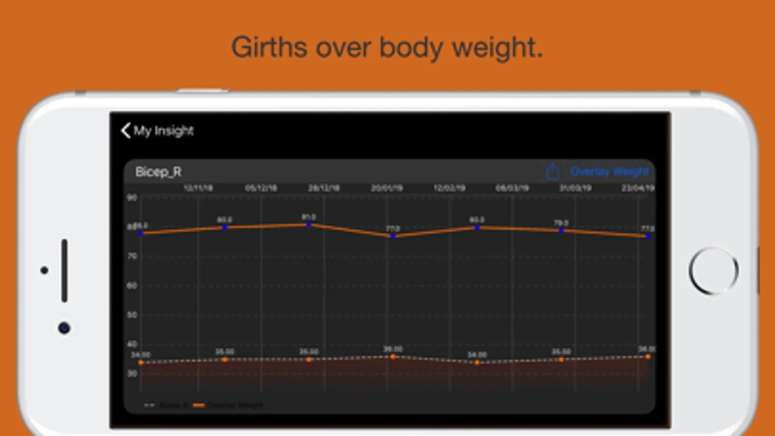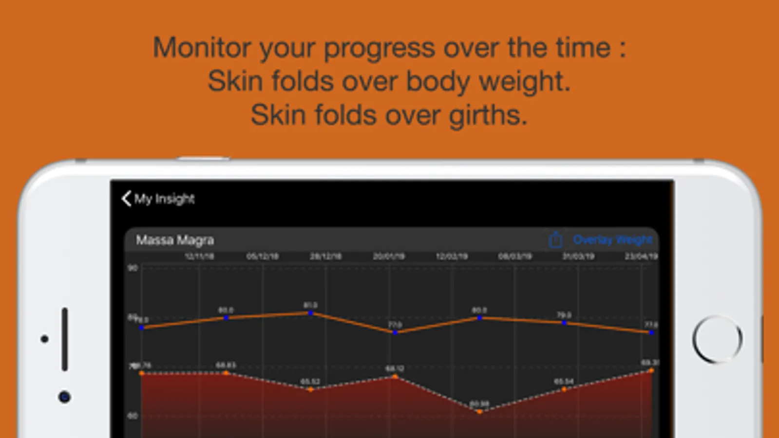 - Charts of girths, skin folds and girth over related skin fold or weight show you the progress over the time