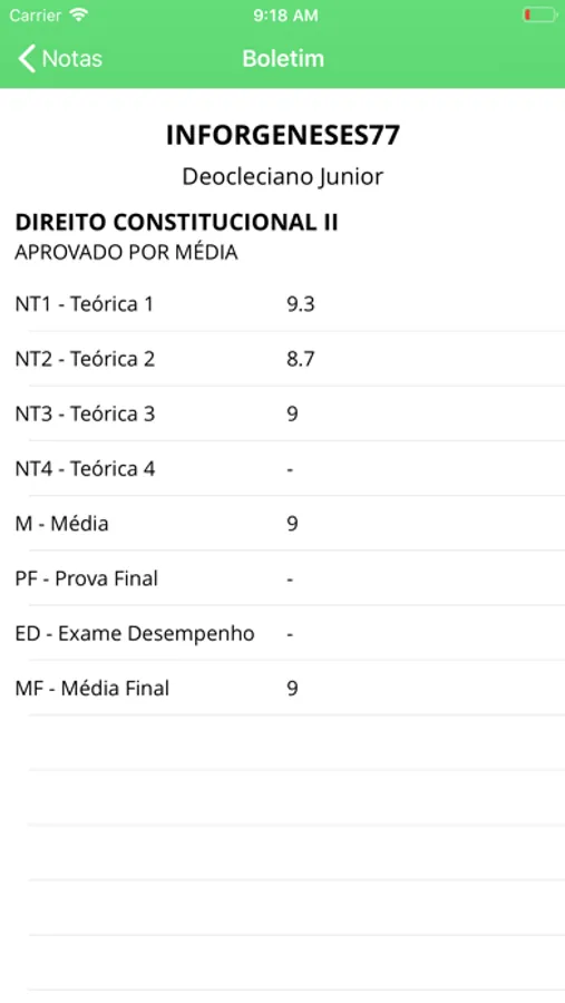Nele, é possível visualizar todas as informações acadêmicas referente ao seu curso, como: