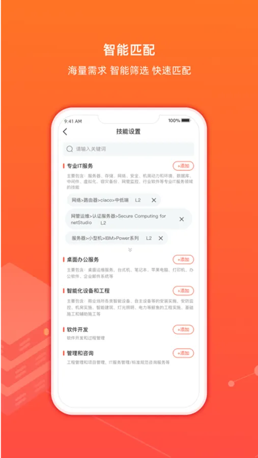注册工程师、服务商通过登记自己的技术技能、接单的地域偏好,可获得客户需求的精准推送,接单并实施服务、获得报酬。