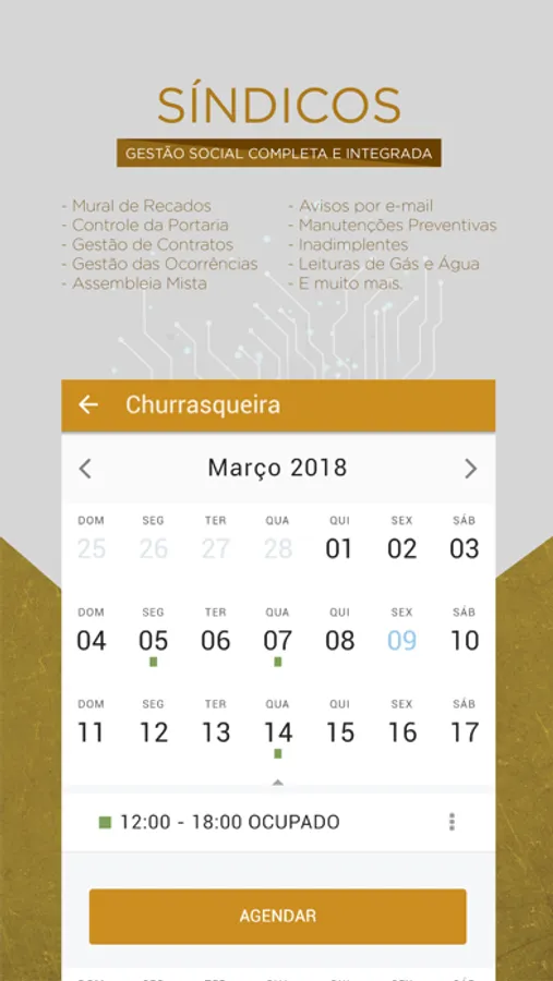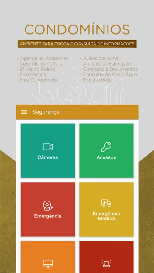 Possibilidade do morador agendar o salão de festas, convidar os amigos, visualizar as câmeras, abrir as portas e ser notificado quando seus amigos chegarem no Condomínio.