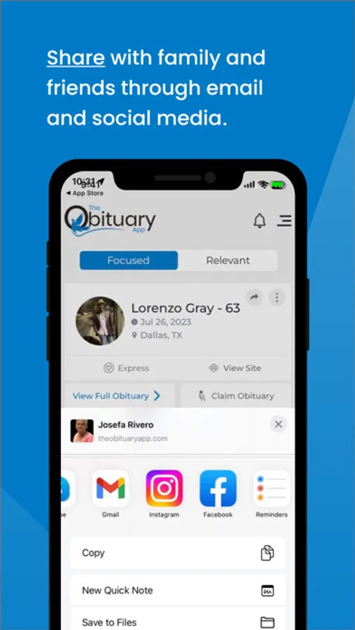 We encourage larger towns to be placed in a user’s “Focused” feed. Here users will see only obituaries from funeral homes in that city or deaths that have taken place in that city.