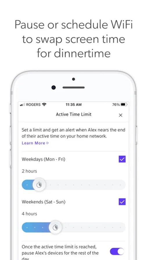 • Pause or schedule WiFi whenever you choose - create Downtime Schedules or set Active Time Limits