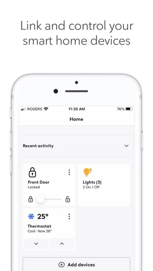 • One app that does it all – link and control smart lighting, thermostats and doorlocks from popular brands