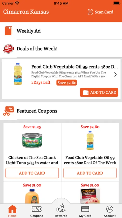 Cimarron Foods Kansas allow to claim as many coupons as you want with one simple scan! No more searching through mailers or printing out emails, Cimarron Foods is bringing rewards right to your mobile device!