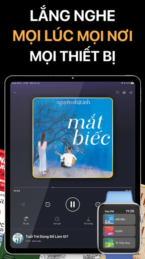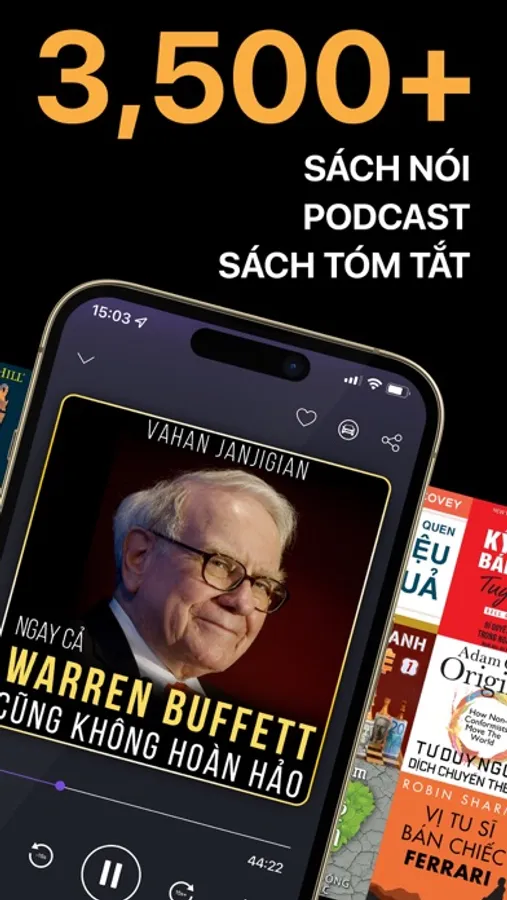 Ứng dụng Sách nói và Podcast số 1 Việt Nam với kho nội dung Chất lượng cao: Hơn 3,500 Sách nói, hơn 500 Podcast, và hơn 300 Sách nói tóm tắt, từ các tác giả nổi tiếng nhất, bán chạy nhất, với hàng chục chủ đề cực kỳ đa dạng, qua những giọng đọc chuyên nghiệp và được xử lý âm thanh kỹ lưỡng để mang lại trải nghiệm tối ưu.