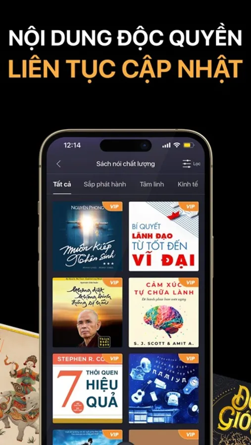 Thành viên VIP được nghe toàn bộ Sách nói & Podcast VIP chứ không bị giới hạn 1 cuốn mỗi tháng như các ứng dụng khác,