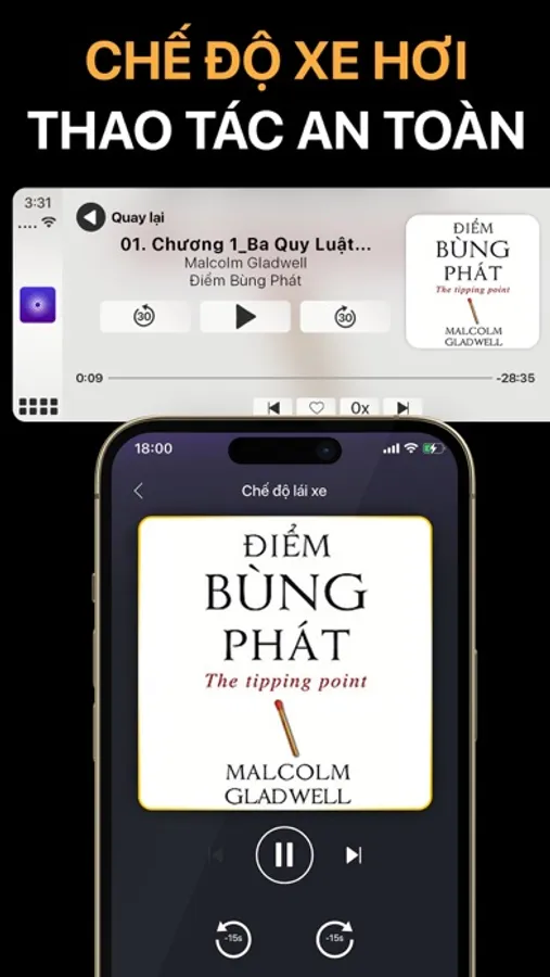 Chế độ xe hơi: Thao tác đơn giản, lái xe an toàn, có lựa chọn carplay để nghe Sách nói trên mọi cung đường.