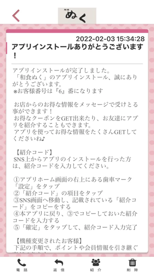 和食ぬくのアプリをSNSを通じてお友達に紹介する事ができます。