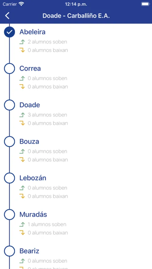 Aplicación que proporciona un método de rexistro das subidas e baixadas do alumnado nas distintas expedicións/paradas do transporte integrado