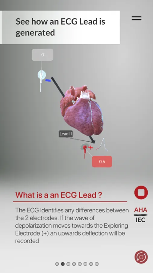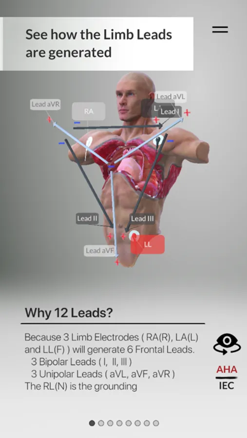 With 3D ECG Leads you can visualize how the ECG Machine reads the heart's electrical activity, and how 3 Electrodes are generating 6 Leads.