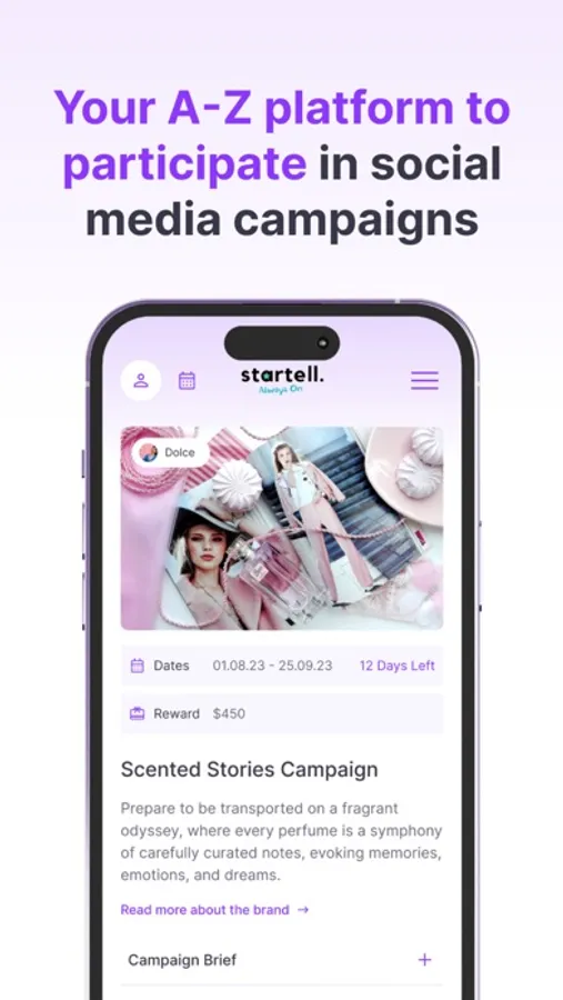 To access user log-in details, influencers must first fill out a quick and easy sign-up form at startell.com or from inside the app. Once their free membership is confirmed, they can wait to be contacted. After they get an offer from a brand, they can communicate directly with the brand's campaign manager, they can accept their participation on a campaign, then create a content and edit it using an photo editing app such as VSCO / Snapseed / Prisma / Afterlight / Adobe Lightroom / Huji Cam / Foodie, or any other photo editing app, then send the content to their campaign manager. All from one place!