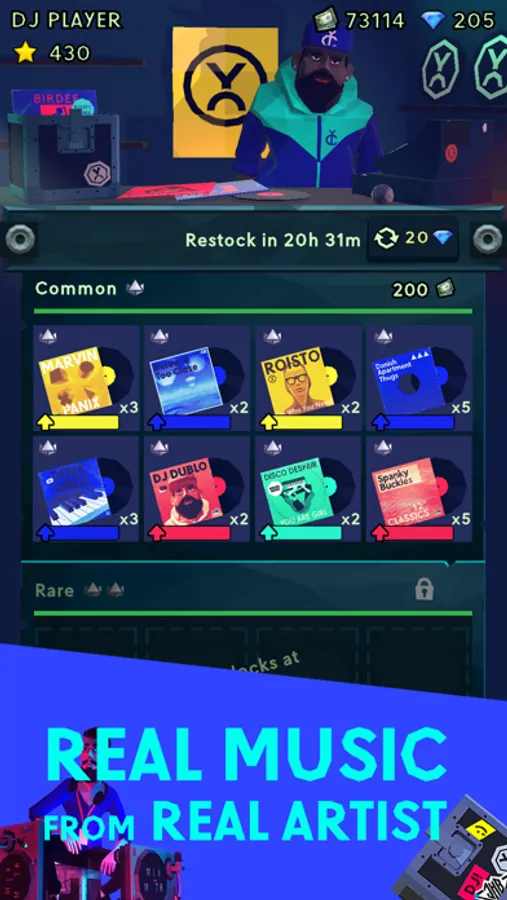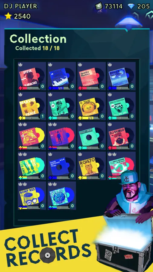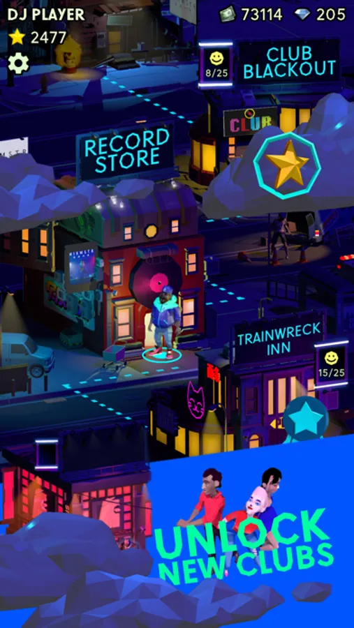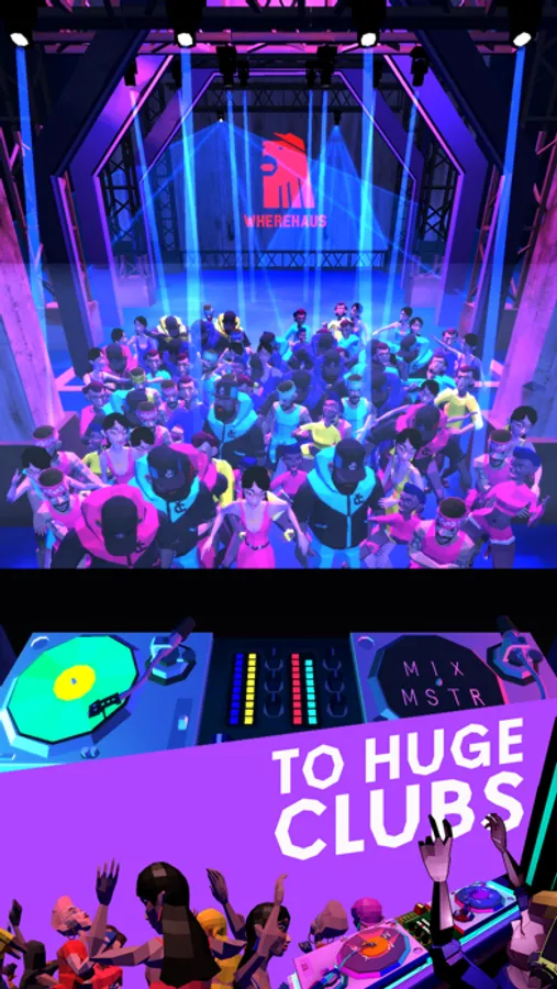 Play the right songs at the right time and build your record bag carefully to please the crowd! Upgrade your existing records and get new ones from the in-game record store updated on regular basis with best music from EDM to Techno. Beat your previous scores on nightclub events to collect cash and fame points to take you perform for bigger stages and dancefloors - finally becoming a superstar DJ hero of the night life in the best new music game!