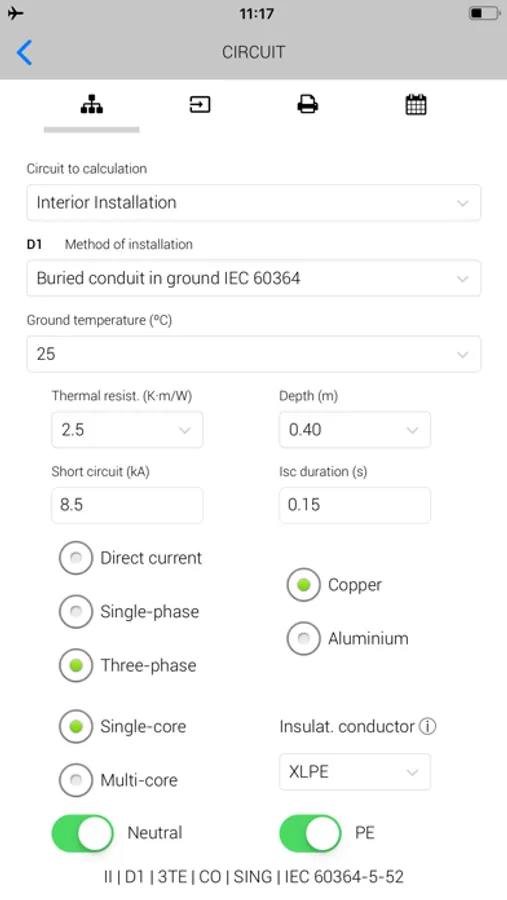 Tool to support the calculation of electrical installations that will allow the user (designer / electrician / technician) to perform electrical calculations easily and quickly.