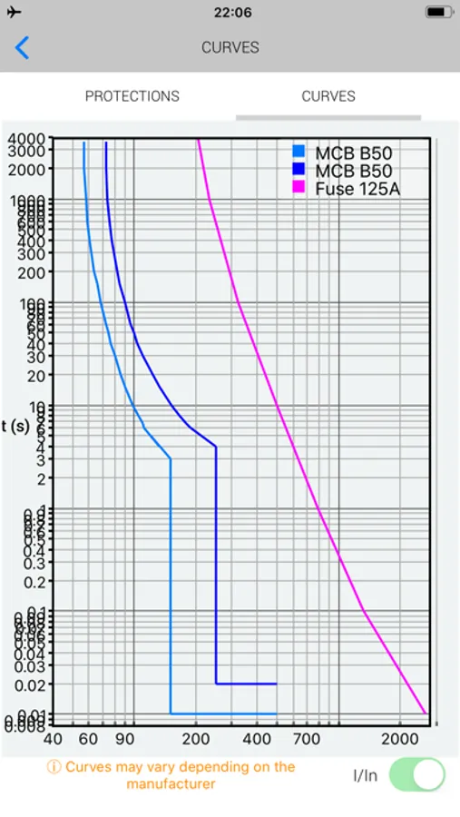 · Circuits with automatic circuit breaker until In = 4000 A (Ir rating setting), maximum fuse In = 1600 A (gG type), maximum 12 conductors parallel per phase, maximum size 630 mm²