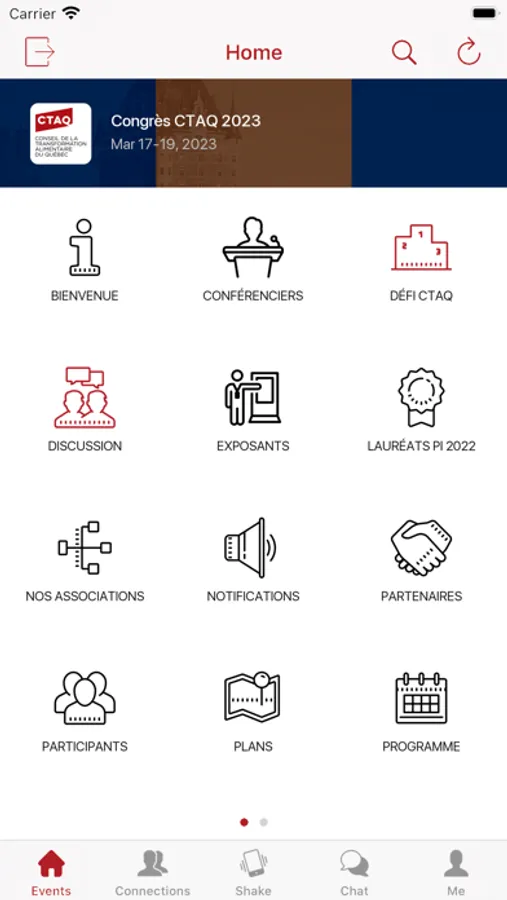 Application événementielle pour le Conseil de la transformation alimentaire du Québec (CTAQ), présentement utilisée pour son congrès annuel.