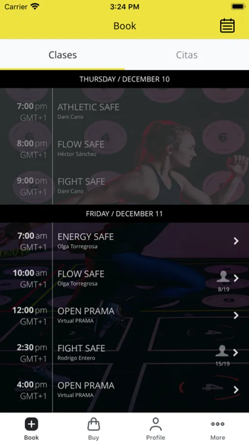 -Acceder a los horarios de las salas PRAMA en las que estés dado de alta. Selecciona tu gimnasio PRAMA favorito.