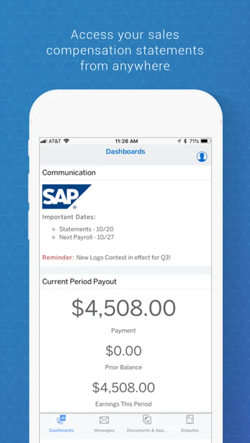 With the SAP Commissions mobile app for iPhone and iPad, you can track your sales compensation in real time. As a sales person, you’re always on the go. Now you have access to: