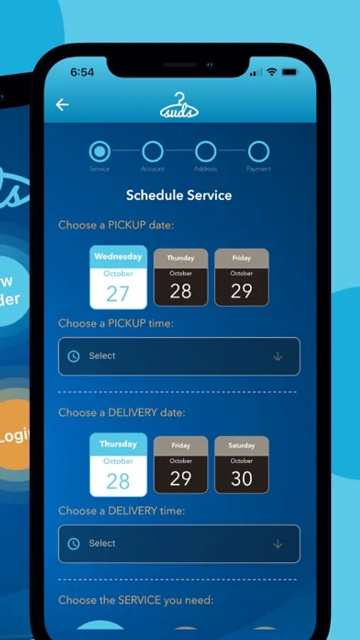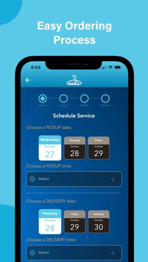 First, simply connect to the Suds app on your mobile device and choose a pickup and delivery time that best suits your schedule.