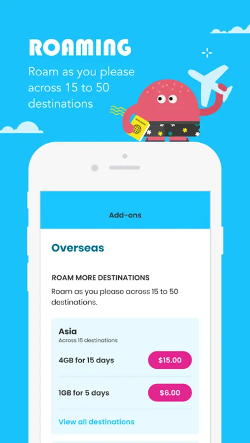 • Travelling soon? Choose from our new roaming plans with big data at local prices to get connected overseas