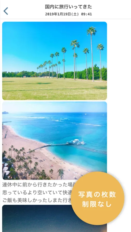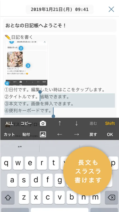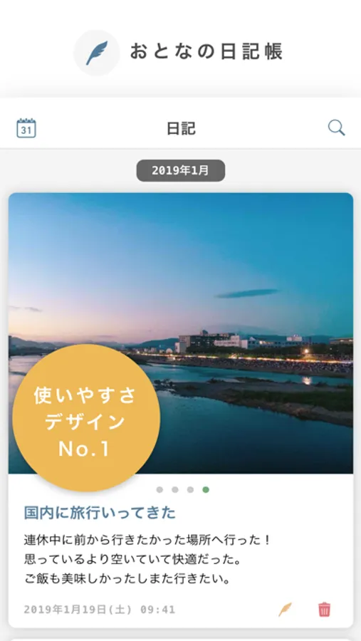 おとなの日記帳は写真も貼れるシンプルで軽量な日記アプリです。