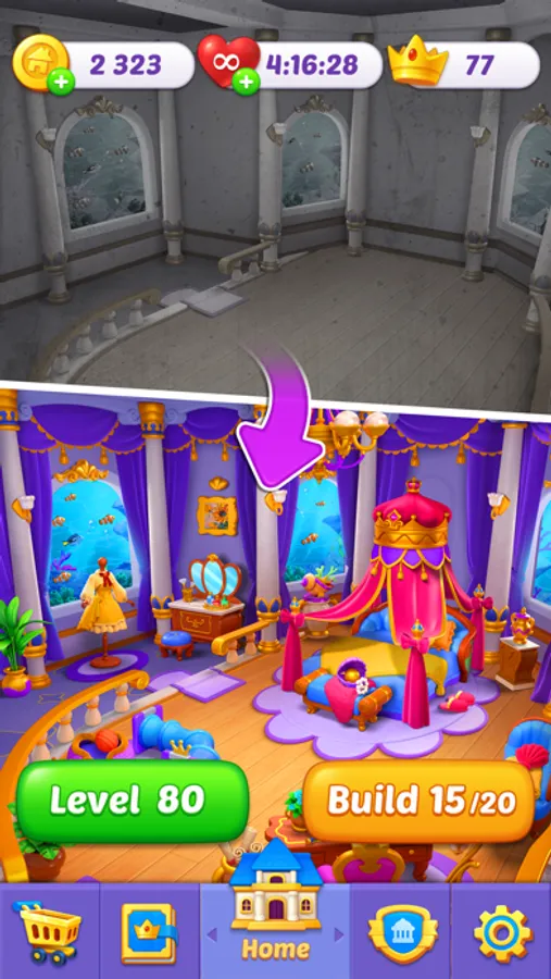 • Multiple Areas. Explore and decorate new areas, including the royal living room, wishing fountain, dining room and more!