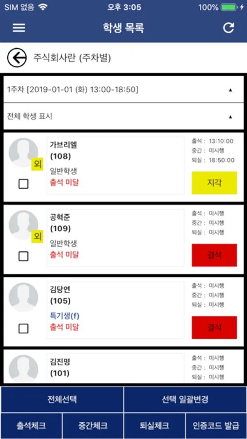 학생분들께서는 '동의대학교 전자출결(학생용)' 앱을 사용하시기 바랍니다.
