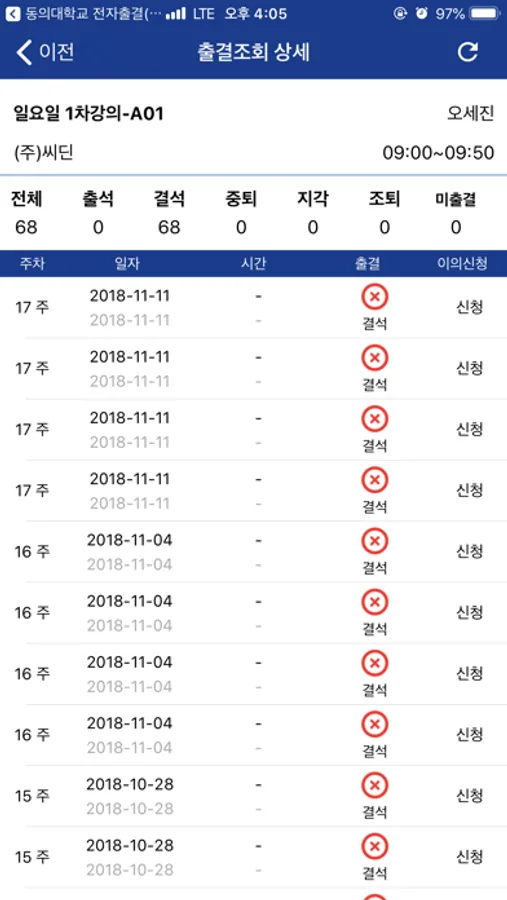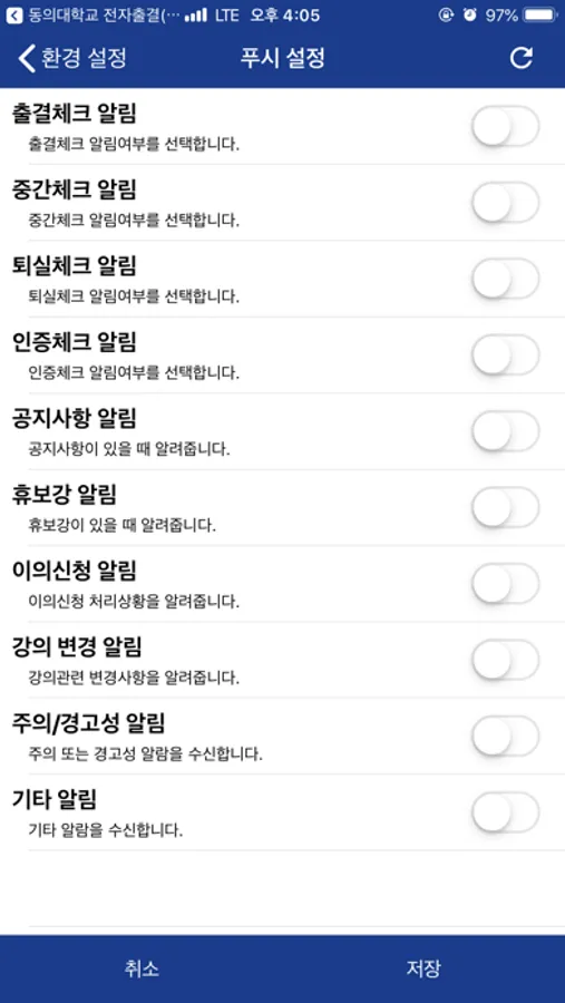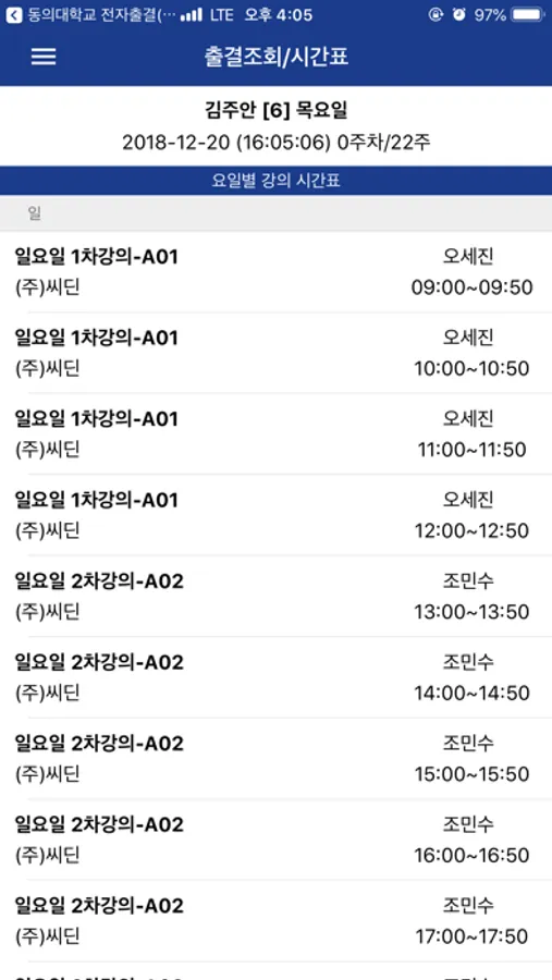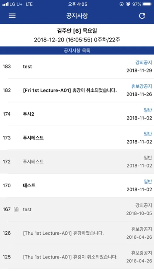 또한 출석체크에 수반되는 출결조회나 이의신청, 공지사항 확인은 물론 푸시 메세지도 제공하고 있습니다.