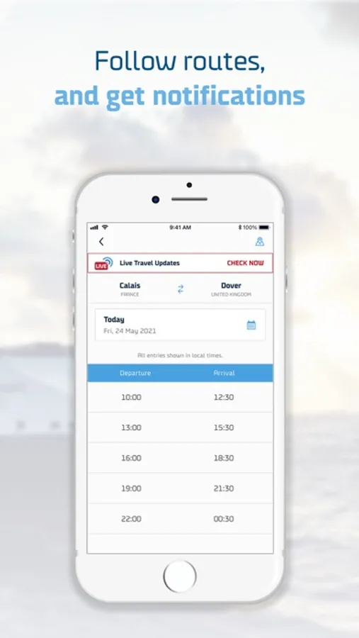 Get up to date information about your departure. Enable your notifications to receive information if a delay or cancellation occurs on your departure and about any traffic or congestion around the terminal.