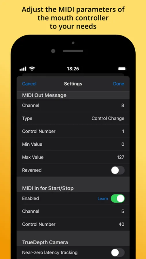 Now you can use the MIDI mouth controller app to control volume, modulation, pitch or any other parameter hands-free. You get one more place to work with effects!