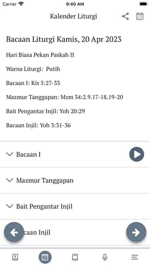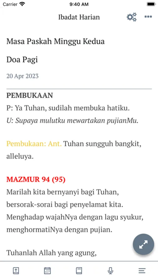 dan setiap tahunnya dicocokkan dengan Penanggalan Liturgi yang diterbitkan oleh Komisi Liturgi KWI.