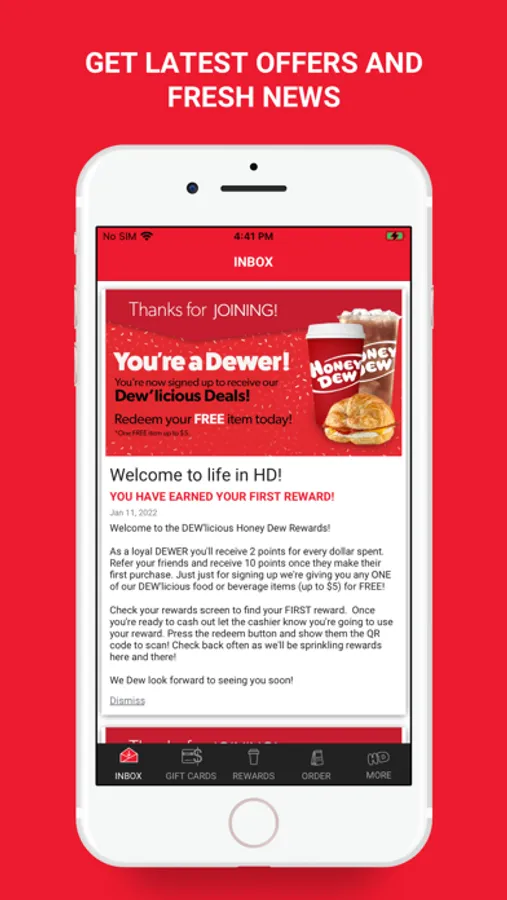 Stay fresh by being notified in real time as Honey Dew news, offers, promotions, rewards, locations, and products roll in.