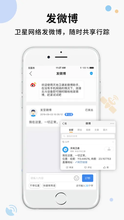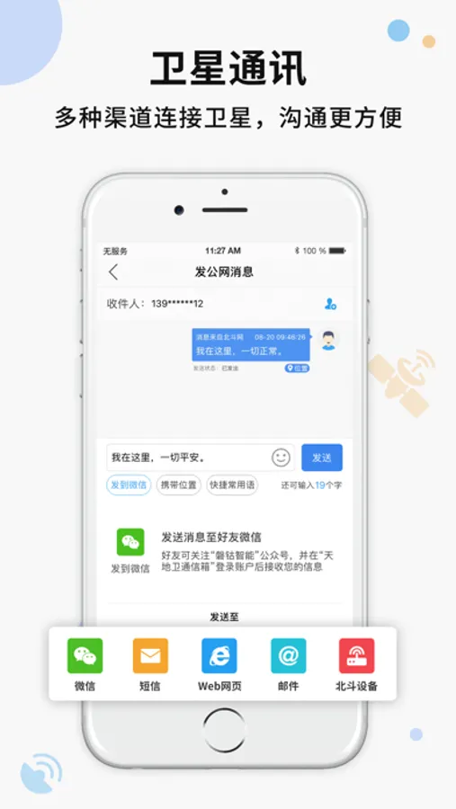 【信息发送】自由发送卫星消息/手机短信/发微信/发微博/发邮件