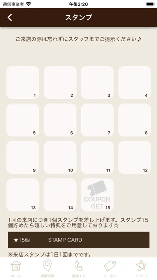 ご来店スタンプを貯めるとお得なクーポンが発行されます(ご利用条件がある場合がございます)