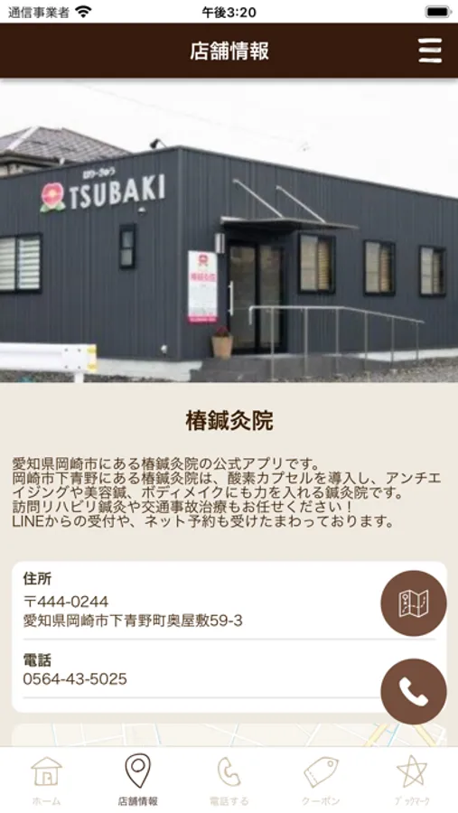 店舗のマップが表示され、地図アプリとも連携しているので、初めてのご来店の時も簡単に見つけることができます。