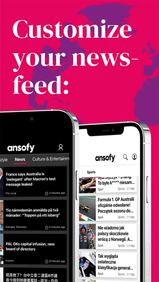 It’s all news, all you. Welcome to Ansofy. Our vision is simple: No matter who you are, no matter where you live, you should have access to solid, reliable, well-written news. Ansofy is a global app, with a local focus. It means we’re working non-stop to include publications, big and small, from the whole world.