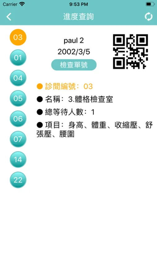 1.體檢進度查詢功能可於活動現場報到後,使用現場人員提供的查詢序號,登入APP進行查詢,減少在現場的等待時間。