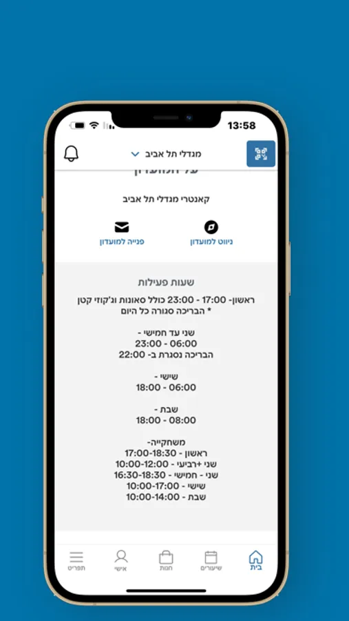 בקאנטרי מגדלי תל אביב פועלים בכל עת למען שיפור והתייעלות לקהל המנויים שלנו ושמחים להנגיש את שירותי הקאנטרי המגוונים לכלל המנויים באמצעות האפליקציה.