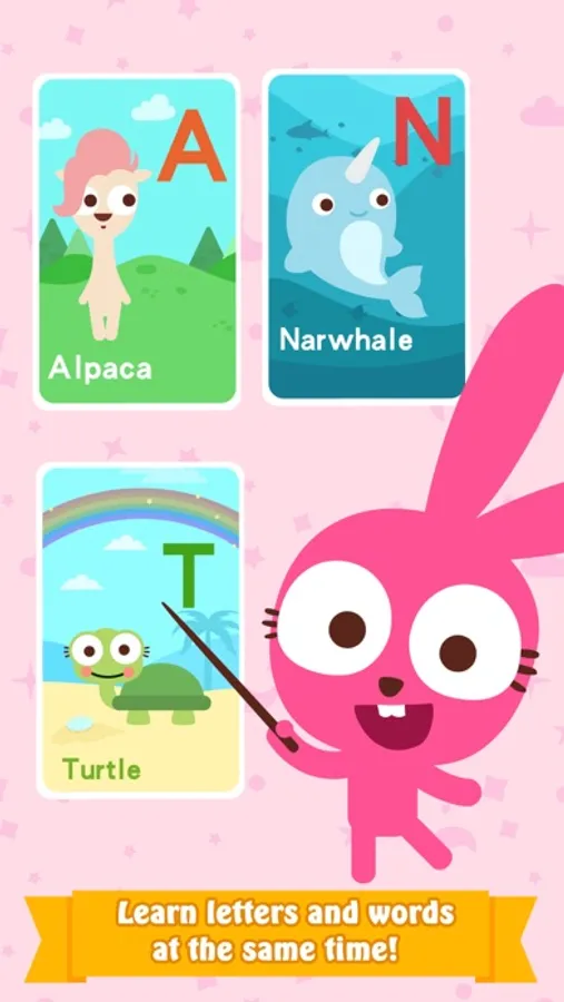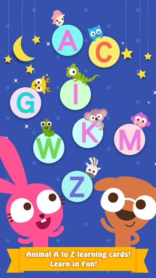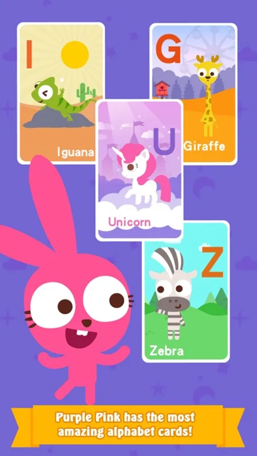 Learning with Purple Pink is never dull! This set of alphabet cards aims to let the kids Learn and recognize 26 English letters from A to Z. Each letter has a corresponding animal to stand for it. Touch the animals and they each will have random and funny reactions.