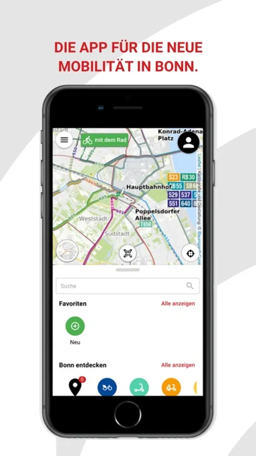Mit dem Update von BONNmobil ist es jetzt möglich, alle Mobilitätsangebote in Bonn individuell zusammenzustellen, zu buchen und online zu bezahlen: ÖPNV Tickets, nextbike Leihräder, TIER-Scooter und Clara-E-Roller sind als Partner in der App vertreten und alle Angebote können kombiniert, gebucht und bezahlt werden. Dank Single-Sign-On-Technologie mit einer einzigen Anmeldung, welche die Nutzung aller Angebote ermöglicht. Neben einer kompletten Designüberarbeitung wurde der interaktive Charakter und das mobile Handling der App weiter verbessert, bewährte Anwendungen wie „Was ist hier?“ und „Linie live“ sind nach wie vor mit an Bord.