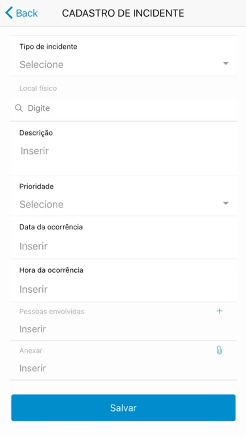 O aplicativo é uma funcionalidade do sistema SAMSenior, que permite a qualquer usuário da solução registrar qualquer evento que não seja parte da operação padrão da empresa e/ou que causam uma interrupção ou redução na qualidade do serviço, oferecendo riscos aos colaboradores ou estrutura predial. Com esse aplicativo é possível fazer os registros dos dados do local, descrição, pessoas envolvidas, com possibilidade de envio de foto, vídeo ou áudio do incidente ocorrido.