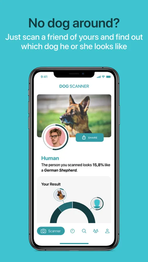 Doesn’t matter! The Dog Scanner app also recognizes humans: Simply scan yourself, your friends, your family or the people around you and find out which dogs you resemble the most!