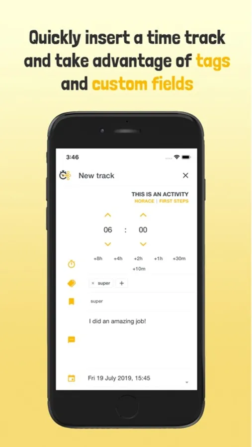 Tracking your daily activities shouldn't be an activity itself. Insert your tracks in a few seconds, or directly use the play/pause/stop function to automize the action.