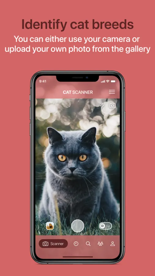 The Cat Scanner app will identify your cat's breed reliably in just a few seconds! Besides taking a picture, you can also record a video or upload an image from your gallery.