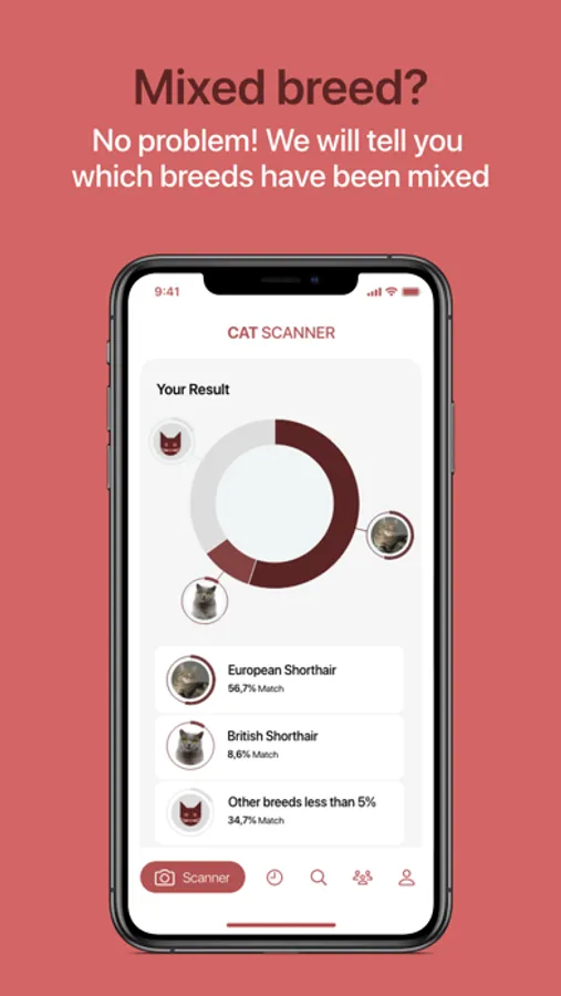 No problem, the Cat Scanner app also recognizes mixed breeds! We provide you with detailed data and interesting facts about the different breeds of your mixed breed cat.