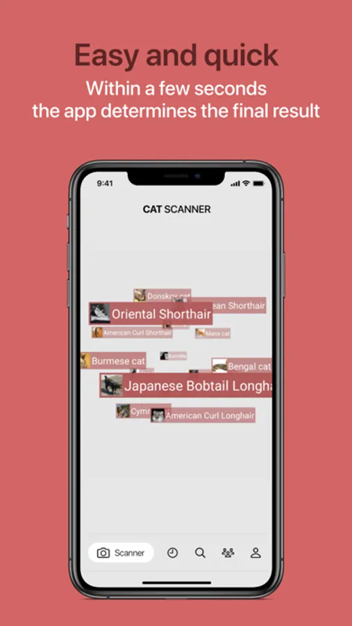Cat recognition as easy as it gets! Despite the small app size you will get all features and be able to identify a cat’s breed or get access to our extensive database at any time! Before you consider getting an expensive DNA test, simply scan your cat with the app and the cat breed will automatically be determined within seconds! Download the Cat Scanner app now!