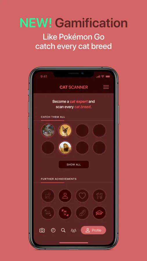 Catch all the cat breeds with our Gamification feature – just like in Pokémon Go! Master the challenges, earn virtual treats and become a true cat expert! Compete with your friends or users from the community and climb to the top of our ranking list!