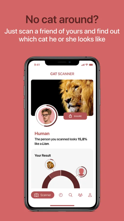 Doesn’t matter! The Cat Scanner app also recognizes humans: Simply scan yourself, your friends, your family or the people around you and find out which cats you resemble the most!