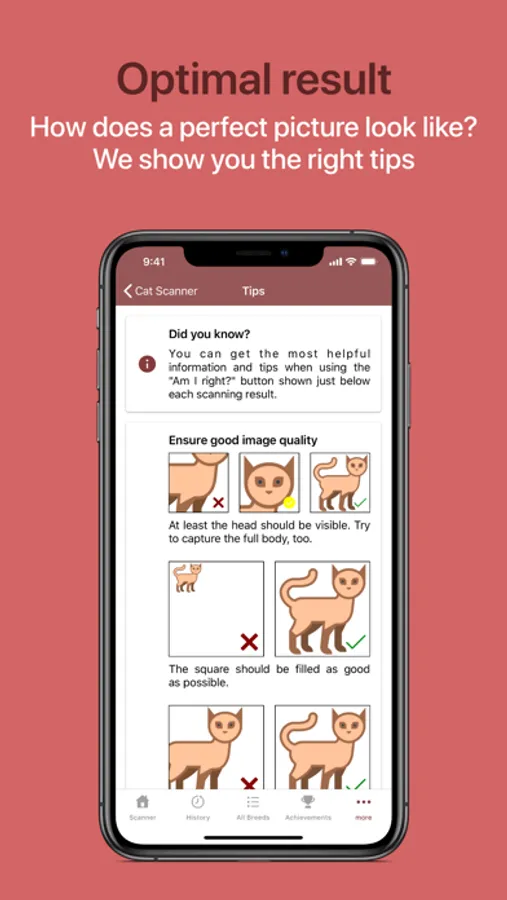Let us know if the cat’s breed has been correctly identified. If not, you will get useful tips to improve your own results. If you also indicate which cat breed is in the picture, you help us to enhance our software since the app automatically learns how to provide even more accurate outcomes. Also suggest or vote for (unofficial) cat breeds that you want us to add to the app in the future!